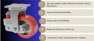 Let’s discuss the TOP 5 REASONS why you may need to integrate spring-loaded caster into heavy-duty cart applications. In heavy-duty caster applications with loads exceeding 10,000 lbs., ensuring optimal performance, durability, and safety becomes paramount.