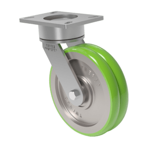 For high-capacity casters designed to handle loads of 17,000 pounds up to 50,000 lbs. (we’ve even built casters that can carry 100,000 lbs.) An excellent example of our Super Heavy Duty Casters is our 99 Series industrial caster – which can range from 10 to 22 inches in diameter and is available in single- or dual-wheel configurations. The 99 series features a dual load race design, which assures smooth rotation of the caster and superior load capacity on any surface and under the most extreme weight conditions.