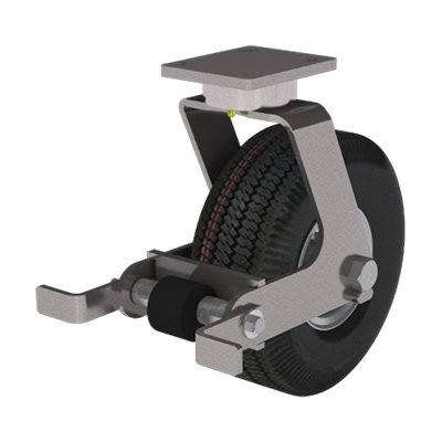 Similar to the standard poly cam brake in operation, the pneumatic poly cam brake offers a greater movement of the brake shoe to compensate for pneumatic tires. The brake is foot-operated.