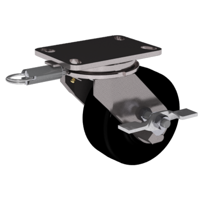 The single-side brake is an economical brake for medium heavy-duty casters with 6- to 12-inch diameter wheels.