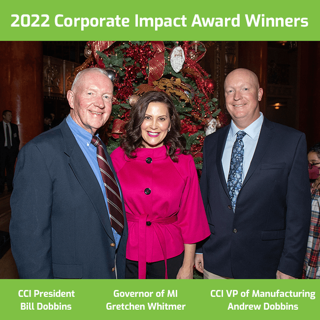 Dobbins and Caster Concepts were honored at the 2022 Governor’s Service Awards ceremony on Thursday, Nov. 17, at the Fox Theatre in Detroit. They join 45 other individuals, businesses, and nonprofit organizations celebrated for their service and community investment.