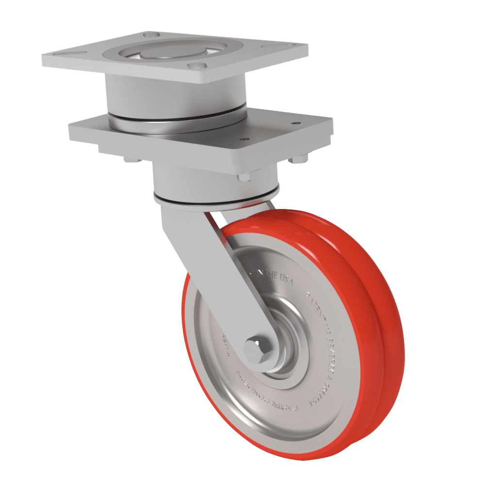Designed with ergonomics in mind, TWERGO minimizes overexertion injuries by reducing initial push force and wheel friction during movement. Featuring a unique multi-wheel design and independently rotating parabolic wheels, TWERGO provides exceptional maneuverability and reduced friction, resulting in smoother navigation and less strain on operators. On average, you’ll receive up to a 25% reduction in rolling resistance, allowing for easier movement and increased productivity. Combined with a T/R 85A polyurethane wheel, this caster is a versatile solution that brings industrial-strength performance with a softer touch. This specialized formulation is engineered for easy and quiet rolling, making it an ideal choice for a wide range of applications. With its high tear and debris resistance, this wheel ensures exceptional durability and longevity. While offering moderate solvent and oil resistance, it is important to note its lack of water resistance and unsuitability for hot and humid environments due to the risk of microbial attack. Featuring precision sealed ball bearings, the caster provides quiet operation and requires no maintenance, all with a load rating of 1600 lbs.