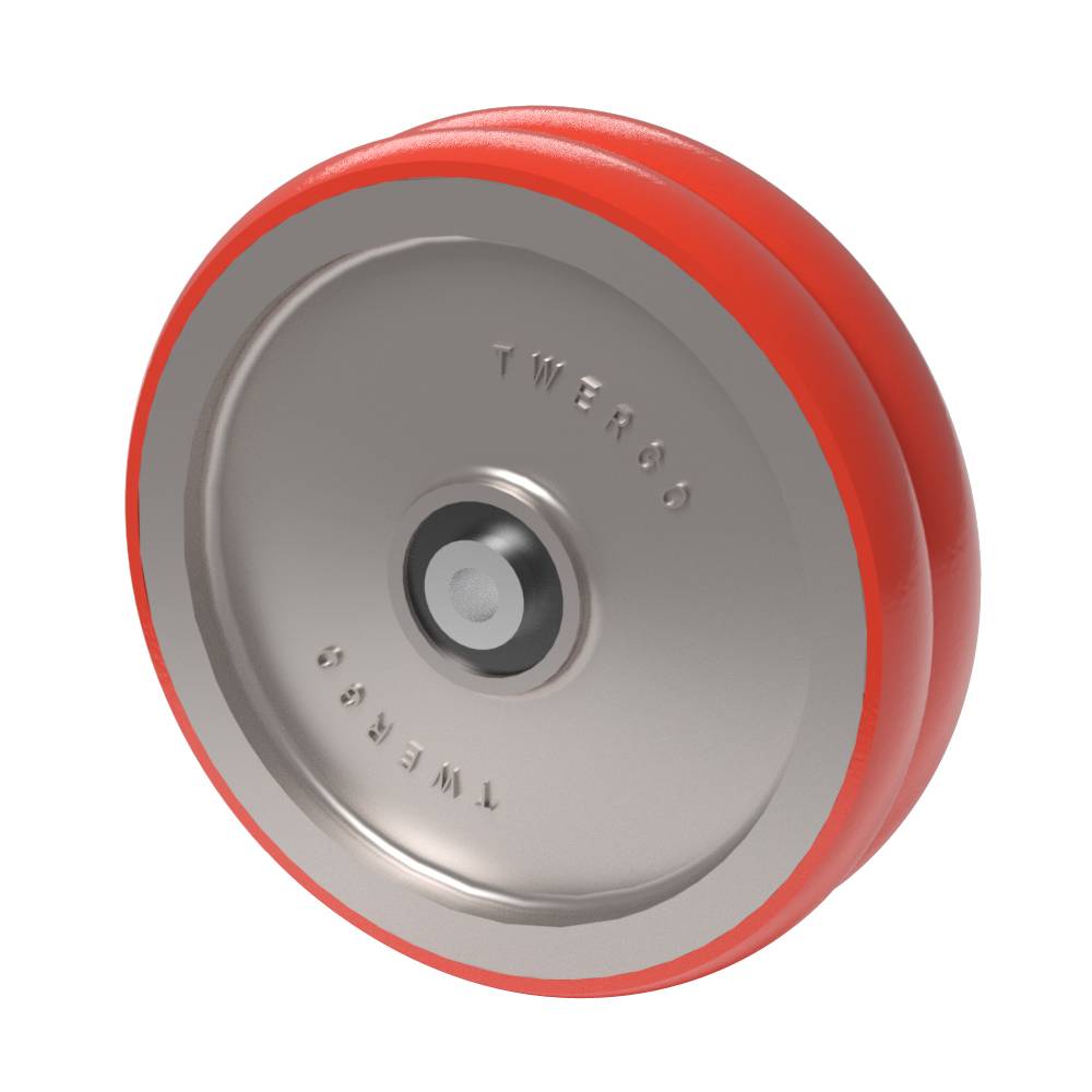 This 10-inch by 2-inch TWERGO® wheel features precision sealed ball bearings for maximum rolling performance, performance that is maximized through our patented, multiple wheel-in-one design. This wheel utilizes our heavy-duty, tear-resistant T/R-85A polyurethane that offers maximum elasticity. All while maintaining a great carrying capacity of 1600 lbs. T/R-85A also provides minimal pick-up of floor debris and added floor protection.