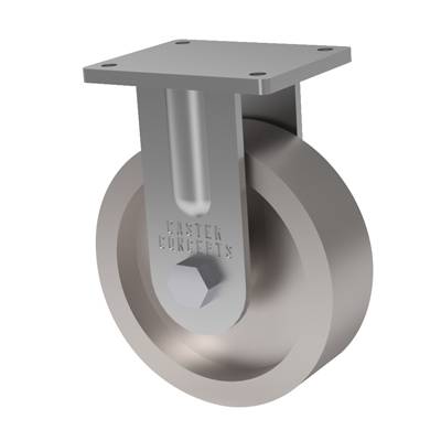 The wheels are constructed of premium Class 30 gray iron for maximum load capacity and impact strength. They feature heavy cross section castings for heavy duty use, abrasion resistance and a long service life. Each wheel is precision machined with rounded edges to finished tolerance. Featuring our precision tapered bearings, the wheels are capable of absorbing excessive side thrust loading and can be used where high speed operation is essential, all with a load rating of 4000 lbs.