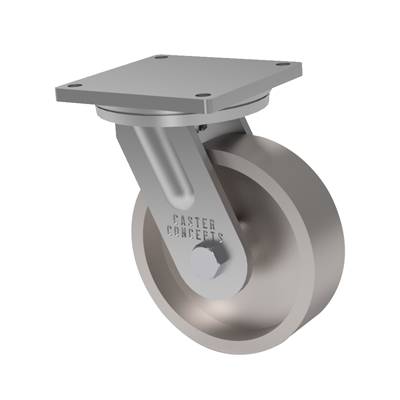 The wheels are constructed of premium Class 30 gray iron for maximum load capacity and impact strength. They feature heavy cross section castings for heavy duty use, abrasion resistance and a long service life. Each wheel is precision machined with rounded edges to finished tolerance. Packed with our straight roller bearings, which are most effective for heavy loads, and are a great option when facing excessive thrust loading, these casters are rated for 4000 lbs.