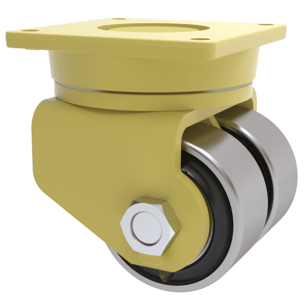 Dual Wheel Caster configurations are engineered for exceptional load capacity, stability, and versatility in demanding industrial applications. With a dual wheel configuration and low overall height, these casters offer the highest capacity while maintaining space efficiency. Our casters ensure even weight distribution, reducing pressure on flooring and ground surfaces to prevent damage. The innovative design allows for the use of smaller diameter dual wheels, providing optimal load distribution and effortless directional changes.