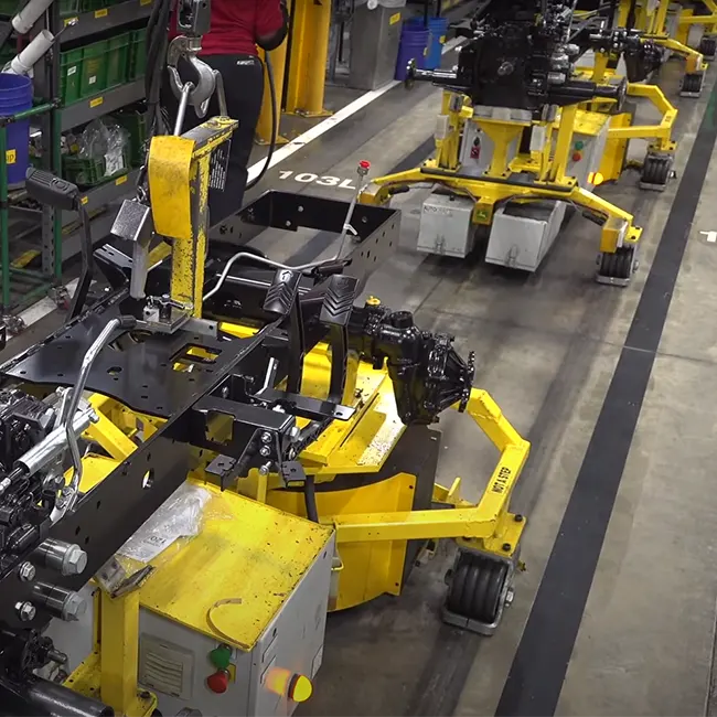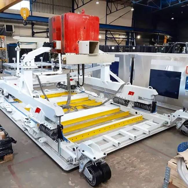 A Tesla plant needed to safely transport a 6,500-lb. roll of material from the staging area into the production line. It demanded precise alignment with the feeding machines, which required a custom-engineered solution.